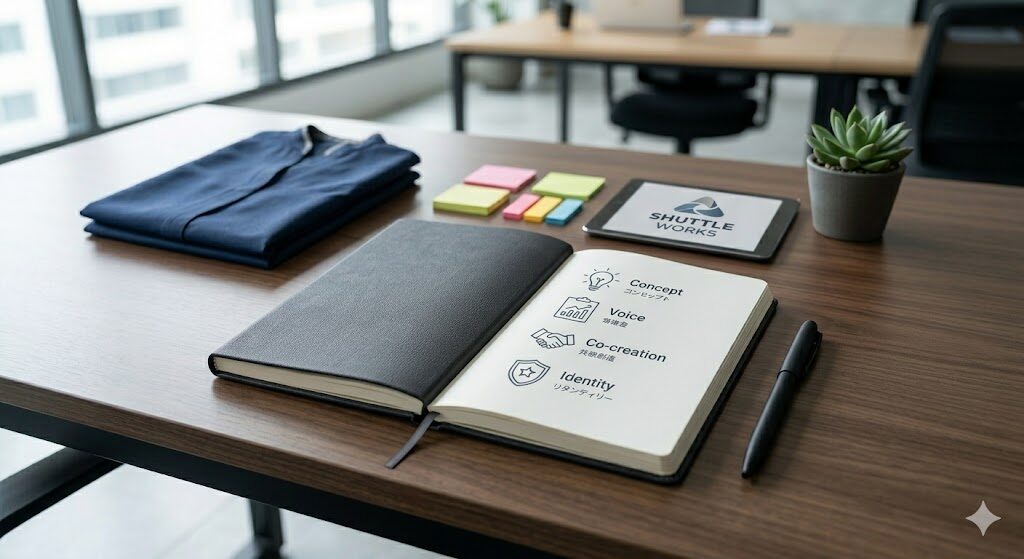 私たちSHUTTLE WORKSは、貴社のビジョンを社員の皆さんの心に届けるブランディングパートナーとして、プロジェクトに全力で向き合います。