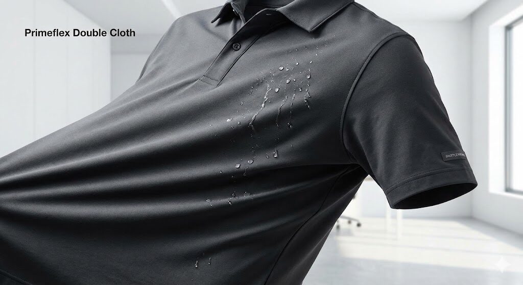 コットンの課題を克服し、吸水速乾・UVカット・ストレッチ性・イージーケア性・上質な見た目を兼ね備えた「プライムフレックスダブルクロス」は、夏のユニフォームに最適な素材の一つです。